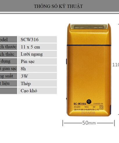 – Sử dụng pin sạc: Sạc đầy trong 8h bạn sử dụng cạo râu hơn 1 tháng.